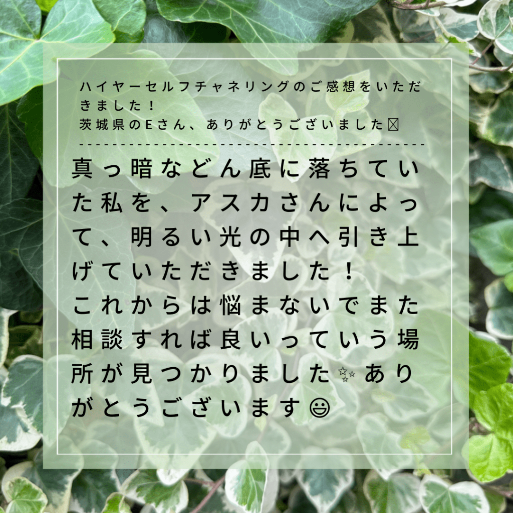 真っ暗などん底に落ちていた私を、アスカさんによって、明るい光の中へ引き上げていただきました!